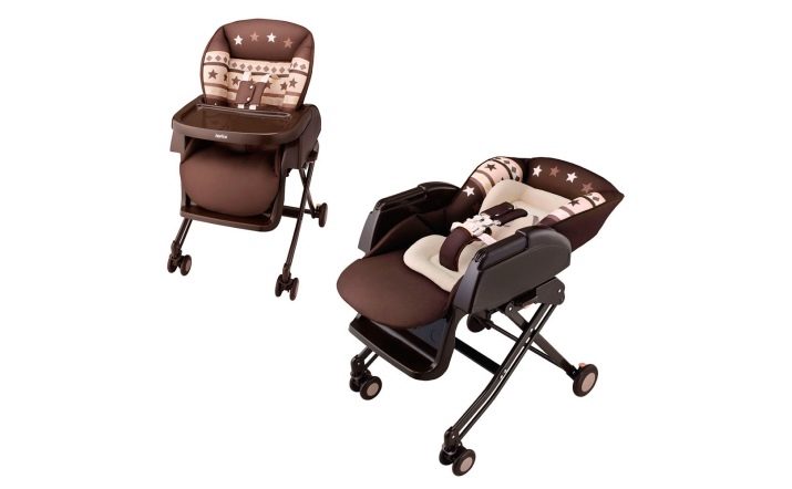 Трансформиращият се шезлонг е един от най -скъпите модели, но функционалността му е несравнима. Този модел е маса за хранене, която се превръща в люлка. Когато бебето ви току-що се роди, можете да оставите леката за почистване маса настрана и да използвате само седалката. Седалката се разгъва до пълно хоризонтално положение, а краката са регулируеми по височина.