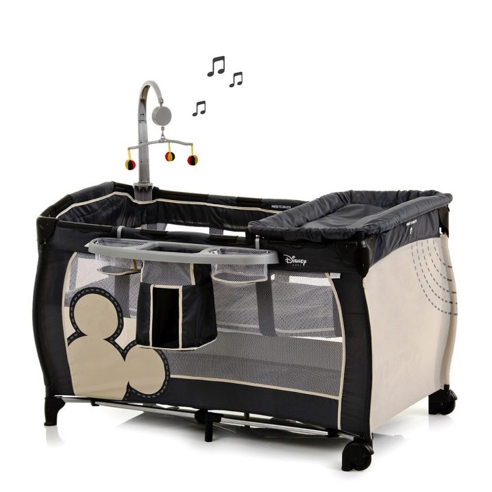 За да заспи детето по -лесно и по -бързо, манежът може да бъде допълнен и със специален блок с музика. Обикновено първоначално е инсталирана успокояваща музика, която насърчава гладък и приятен сън..