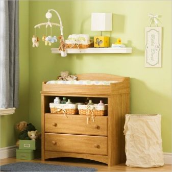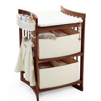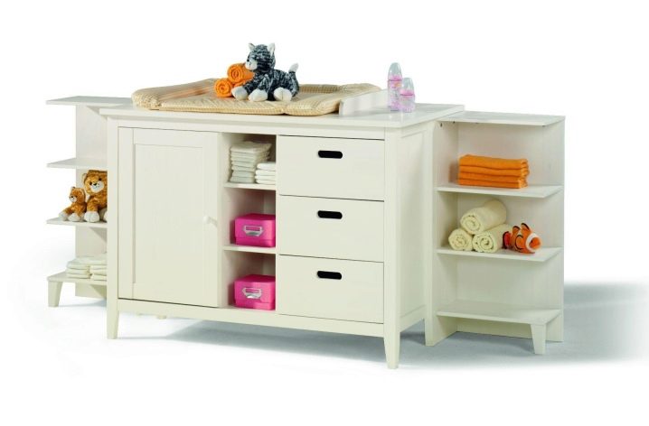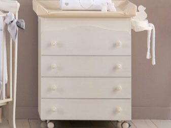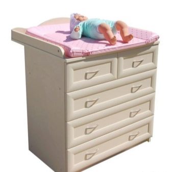 Често модел на скрин, освен чекмеджета, предвижда специални секции, рафтове за съхранение на бебешки аксесоари. За по -голям комфорт и издръжливост на скрина можете да оборудвате масата с водоустойчив матрак или специален мек кърпа. В този случай гъвкав матрак с оптимално твърда основа трябва да бъде добре фиксиран върху повърхността на скрина.