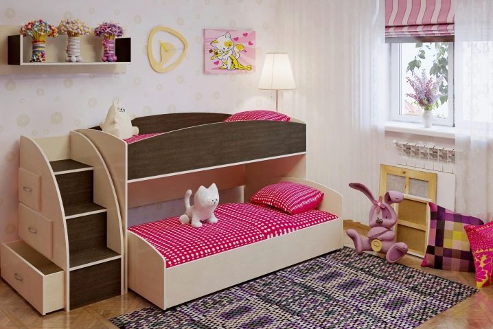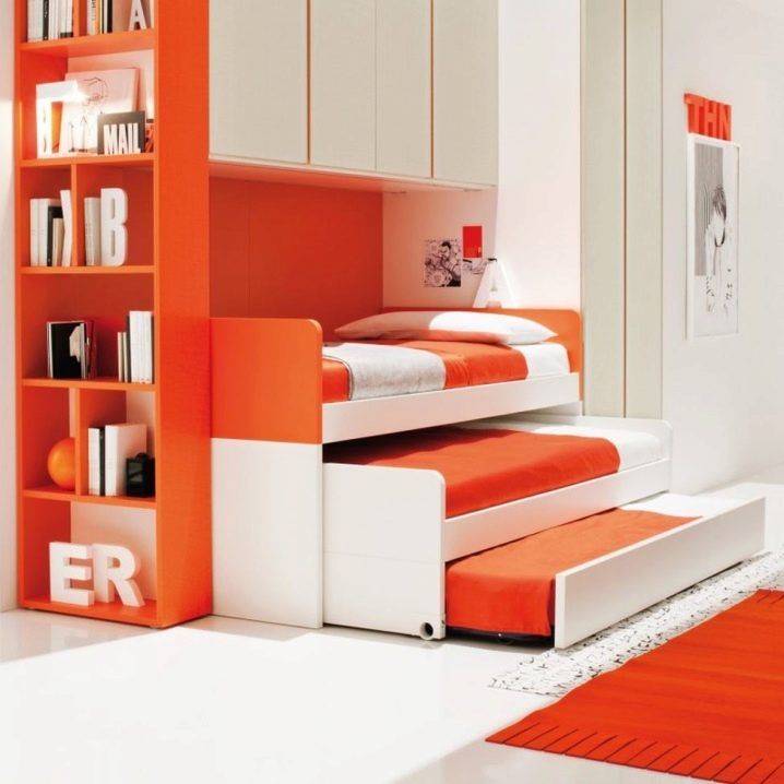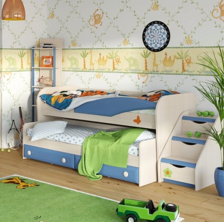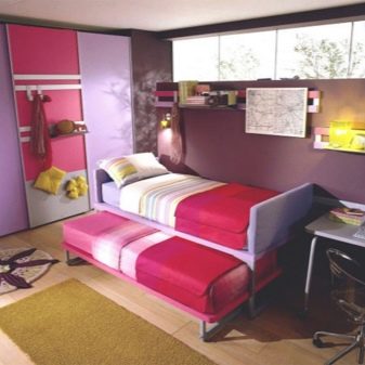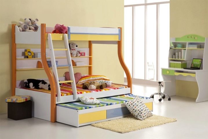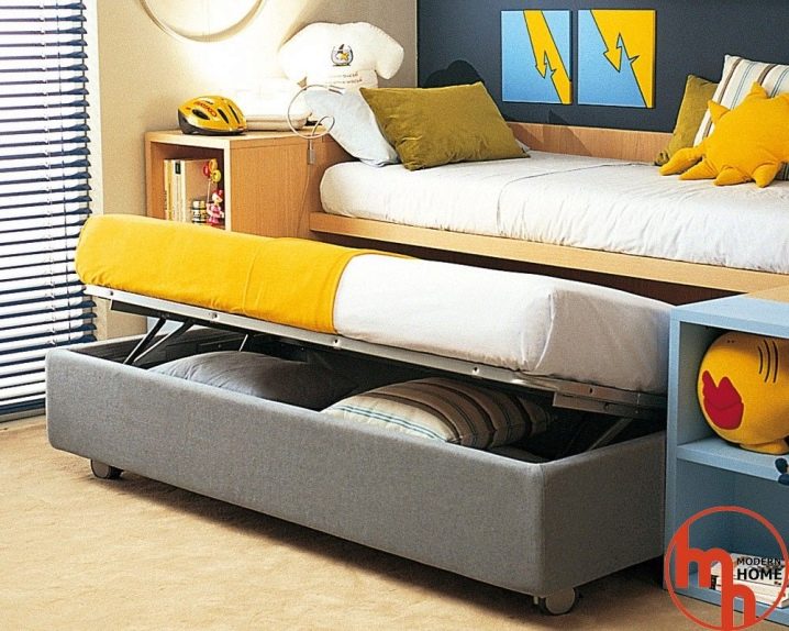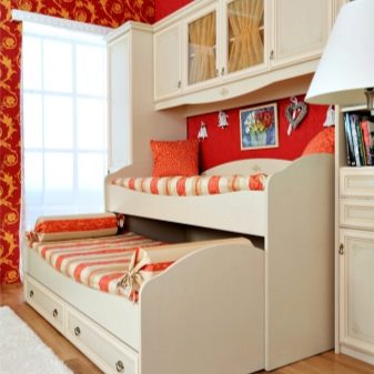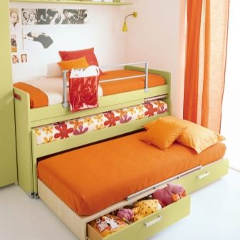 Има модели за 2 деца, а за три, с долно разтегателно легло – с допълнително легло. Двустепенното плъзгащо се легло ще помогне за перфектно организиране на пространството в детската стая. В този случай си струва да се обърне специално внимание на безопасността. Купете модели с бариера, така че бебето ви да не падне случайно през нощта и да избегне нараняване. Уверете се също, че моделите със стълби имат стабилна структура..