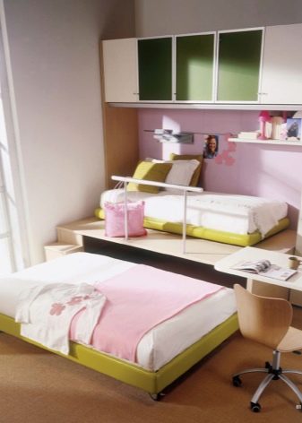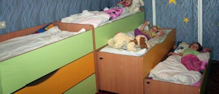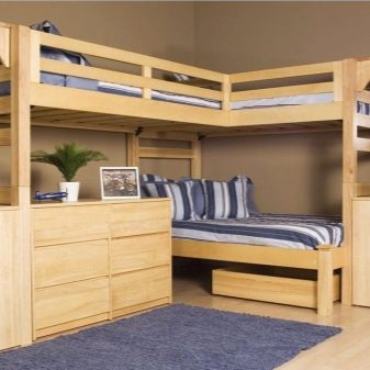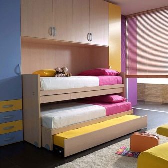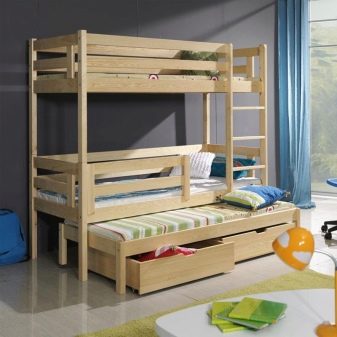 Тези модели са предназначени съответно за три деца. Мебелите, вместо кутия за спално бельо, имат допълнителен матрак, който ще бъде разположен в самото дъно.