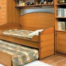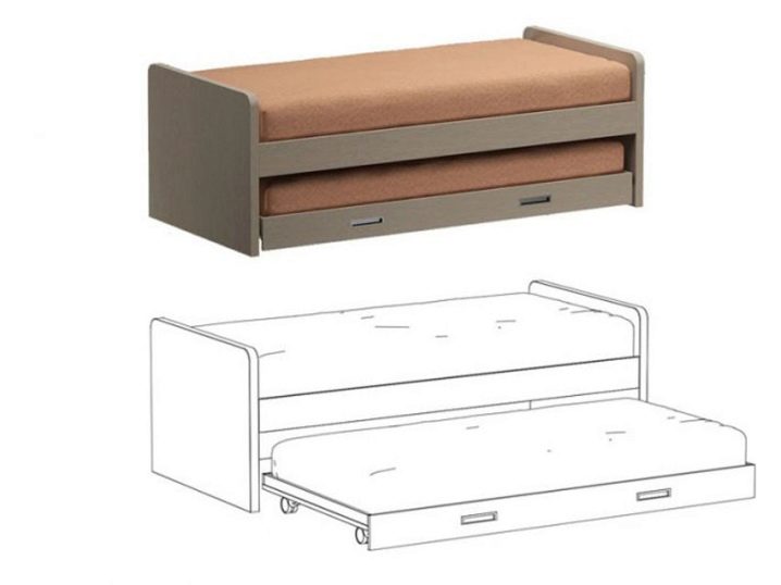 Този модел се отличава с факта, че има отделни легла. Разтегателният ред не е прикрепен към горния ред. Следователно, той може лесно и удобно да бъде изваден и поставен на мястото, което харесвате в апартамента. Такъв модел би бил по -практичен. Получавате две легла в едно.