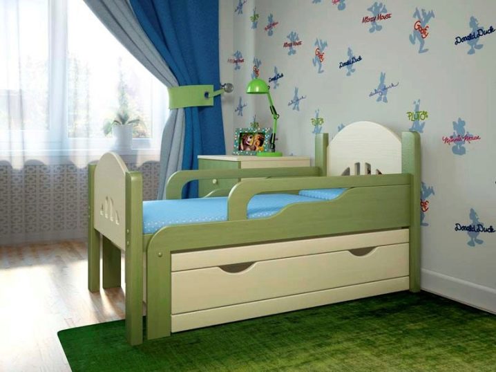 Страните са отговорни за безопасността. Те ще предпазят малките ви от случайно заспиване. Долу има три просторни чекмеджета, където е удобно да съхранявате играчки, спално бельо и други аксесоари.