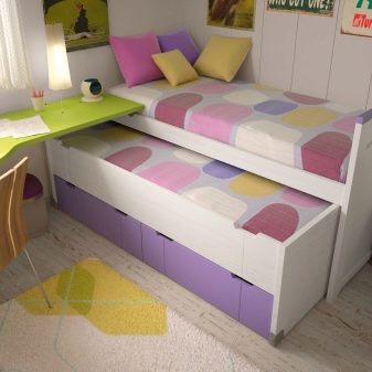 Особено внимание заслужават разтегателните легла за две деца с кутии за спално бельо. Това е доста удобен вариант за деца от всички възрасти. Ще бъде особено добре, ако долното място за почивка не се прикрепи към горното ниво..