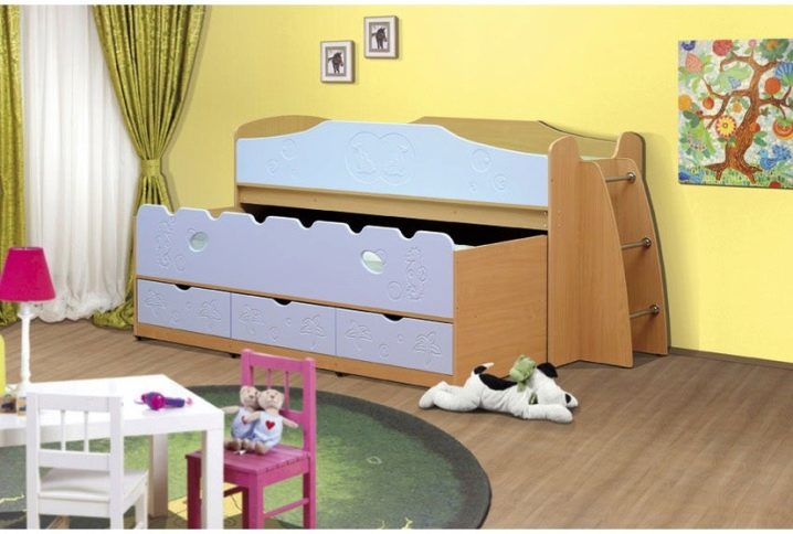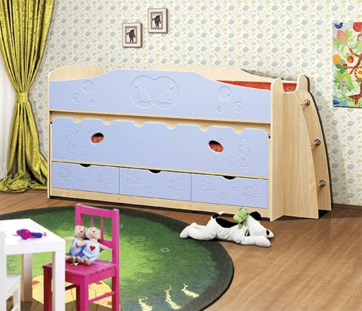 Можете също така да дадете предпочитание на мебели от ПДЧ. Той също така ще бъде здрав и издръжлив, ще ви служи дълго време. Нещо повече, именно тези модели имат най -цветните и живи покрития. Това легло ще зарадва вашите малки..