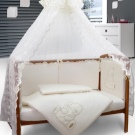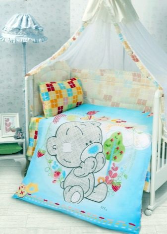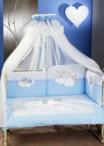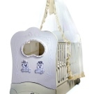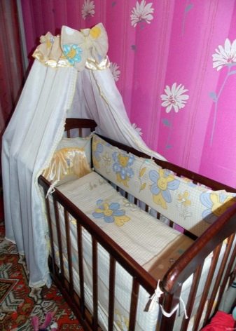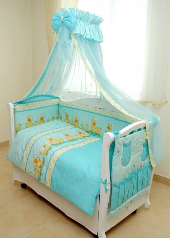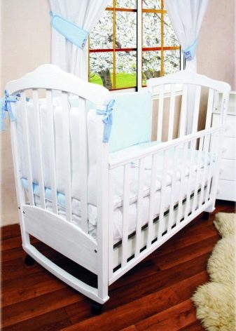 - Комплектът обикновено съдържа люлка, сенник, матрак и странични страници. Купувайки такова легло, не е нужно да харчите допълнителни пари за комплект в креватче, купувайки само одеяло и спално бельо.