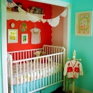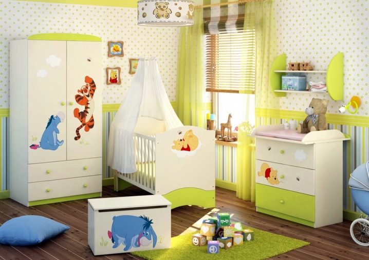 - Млечно легло с ярък скрин ще бъде отличен акцент в интериора на бебето на детето.