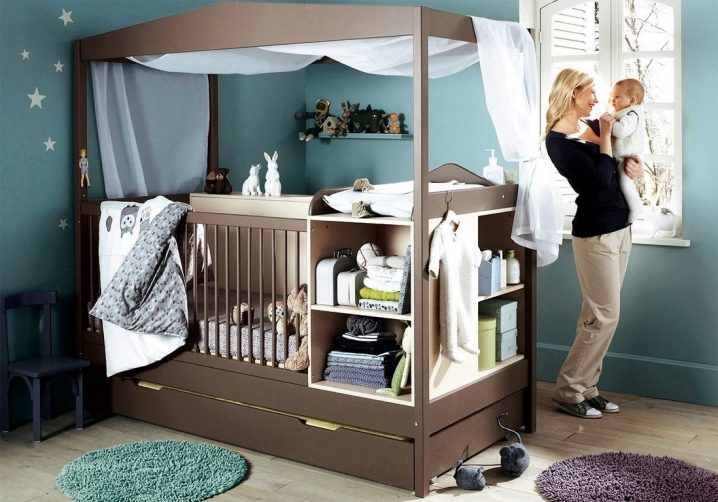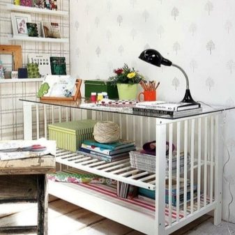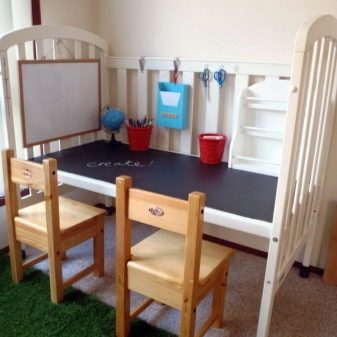 Впоследствие, когато бебето порасне, използвайки прости устройства от малко креватче, можете да направите малко компютърно бюро или място за правене на уроци. Спални елементи и не е необходимо допълнително да купувате люлка за новородено, странични, матрак и сенник.