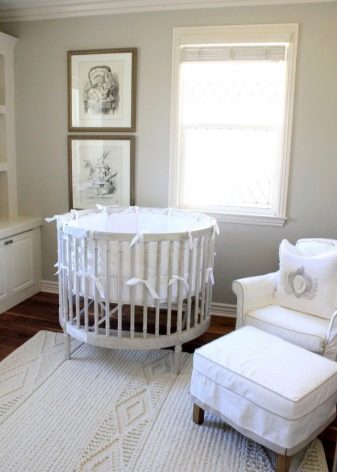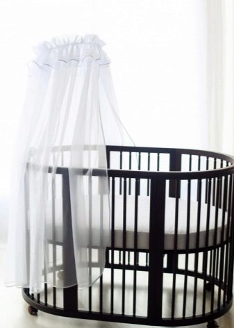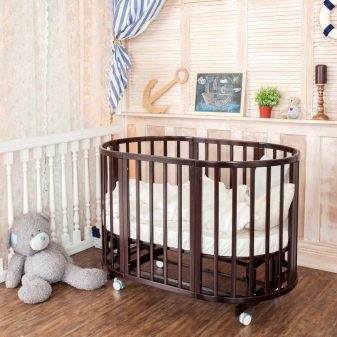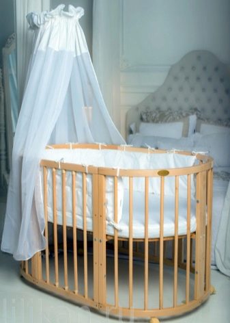 Кръгли и овални легла са в голямо търсене сред хората с високи доходи, цената на самите легла и аксесоарите за тях е много висока. Това е единственият негатив. Иначе, съдейки по рецензиите, това е отлично креватче, удобно за родителите да го използват, удобно е бебето да спи и да играе в него, изглежда страхотно, лесно се инсталира дори в спалнята на родителя, а по -късно може лесно прехвърлен в детската стая. Страхотен диван или масичка за чай с фотьойли, след като бебето израсте от него.