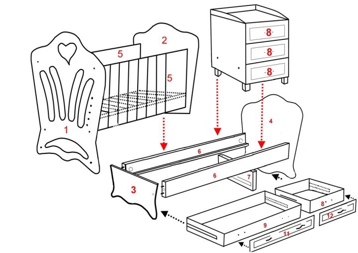 В края поставяме матрака, вмъкваме кутиите и го поставяме на мястото, където бебето ще спи. Сглобяването завърши.