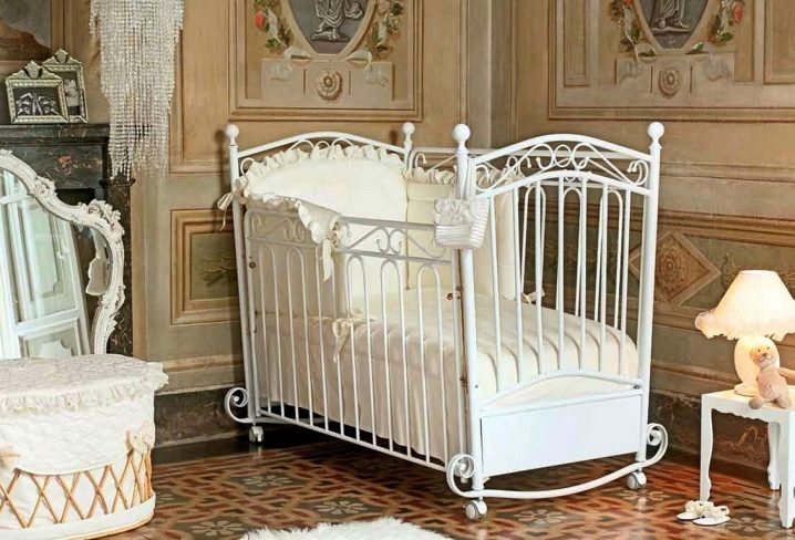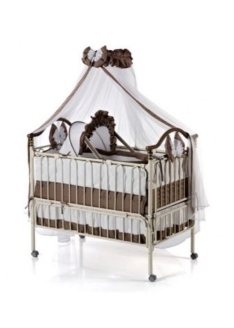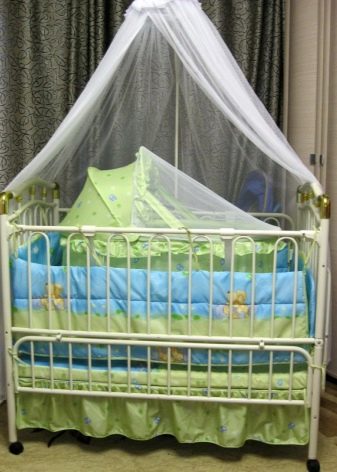 - Изработен от метал. Металните креватчета са здрави и издръжливи. Единственият недостатък е, че този материал е студен и ако парцалната страна се отстрани, тогава, докосвайки метала, детето ще почувства дискомфорт.