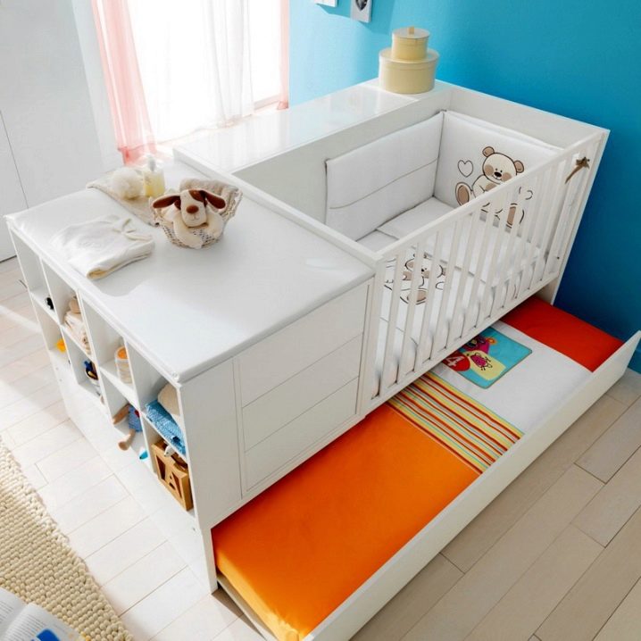 Когато избирате трансформиращо се легло, първо трябва да определите функционалността, която присвоявате на това легло. Ако имате нужда от допълнително място за съхранение на детски неща, се препоръчва да изберете трансформиращо се легло с скрин. Тук можете да комбинирате скрин, допълнителни чекмеджета в долната част на леглото и маса за преобличане.