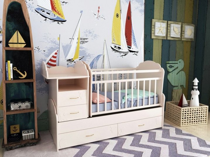 - Детско легло 8 в 1. Това е легло с описаните по -горе функции, допълнително оборудвано с махало за люлеене на бебето.