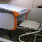 - Благодарение на подвижната седалка и наличието на допълнителни дупки в страницата; предимството му ще бъде неговата ниска цена и дълготрайност. Недостатъците са регулирането на една или повече стъпки с определен размер (например стъпката се измерва с 5 см и става невъзможно повдигането на седалката с 3 см), помощ от възрастен, ако е необходимо да се промени височината на стола.