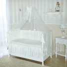 Бялото е най -изгодният цвят. Той е идеален както за момче, така и за момиче. Платът може да бъде украсен с различни приложения. Пеперудите и цветята могат да създадат приказна атмосфера в спалнята.