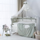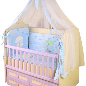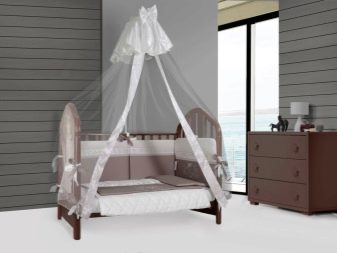 Много е удобно в такова креватче. Родителите могат да си вършат работата, без да нарушават дневния сън на детето. Бебето ще възприеме завеса с завеса като сигнал за започване на сън. Това ще ви помогне да отделите по -малко време за оформяне..