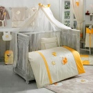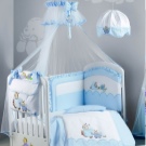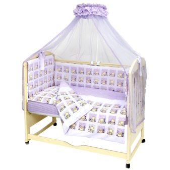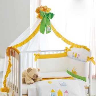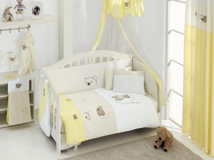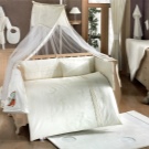 Материалът трябва да бъде избран в меки нюанси, така че да не нарушава спокойствието на детето преди лягане. Също така цветовете трябва да се комбинират с интериора и цвета на спалното бельо..