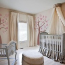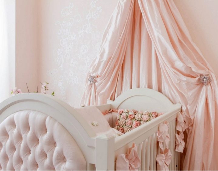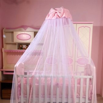 Освен това балдахинът над креватчето изглежда много красив. Особено важно за едно момиче, защото майките искат да внушат чувство за красота от раждането..