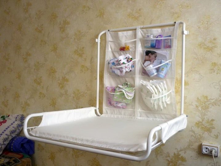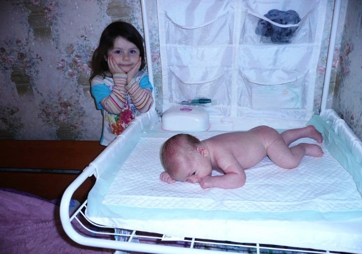 В разгънато състояние цялата шарнирна конструкция прилича на отворена книга. Горната част е разделена на няколко прозрачни полиетиленови джоба, удобни за съхранение на дребни предмети. Сменящата се повърхност е оборудвана със страни, покрити с приятно на допир покритие. Масата е оборудвана с матрак от полиуретанова пяна.