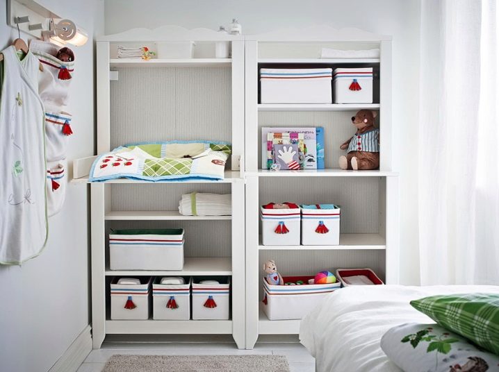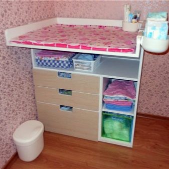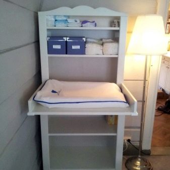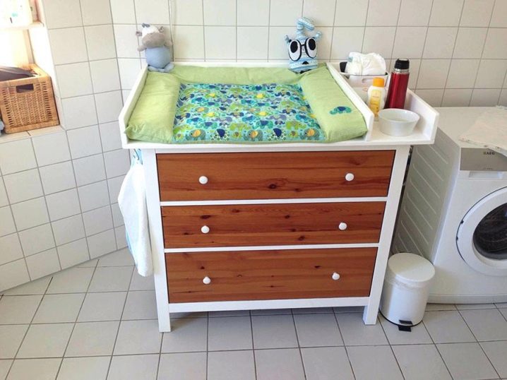 - Хенсуик. Този шкаф за сменяеми маси е едновременно шкаф, тъй като има вграден рафт. Проектиран е, като се вземе предвид възможността за демонтиране на моливника, поради което продуктът ще бъде превърнат в стелаж. Размерите на променящата се повърхност, както пишат купувачите, са много удобни, плътната основа създава надеждна опора, високите страни не позволяват на детето да се плъзне на пода..