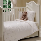 Спалното бельо също трябва да съответства на стила на стаята. Спалното бельо в зелени нюанси е идеално тук – ще създаде усещане за сън точно в полската трева. Топло жълто или прасковено спално бельо ще изглежда да обгръща бебето в слънчевите лъчи, а бялото ще го обвие в топла светлина.