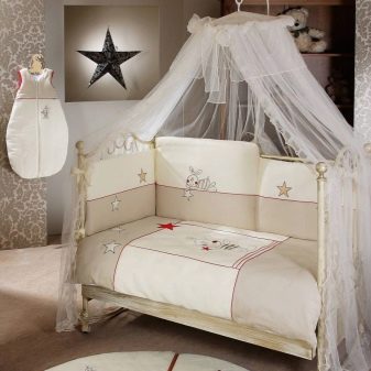 Всяка майка иска да обгради бебето си не само с висококачествени, но и красиви неща, така че спалното бельо също може да бъде необичайно красиво: невероятно реалистични или приказно щампи на карикатури, ярки апликации и бродерии, дантели, камъни, кристали, пайети, волани и много повече. сред декорациите за спално бельо за деца. Яркият декор е приемлив, но не трябва да пречи на здравословния сън на бебето. Освен това би трябвало да е труднодостъпно, така че любопитно хлапе да не поглъща по невнимание част от декора, особено за бельо с камъни и кристали..