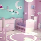 Идеалното обзавеждане за такава стая е комплект за детска спалня, изработен в светли нюанси. Декорът под формата на цветя, пеперуди, малки животни ще изглежда много оригинален – всичко това ще направи стаята по -“жива”, ще внесе капка магия в нея. Важно е такава стая да е много лека, така че лека прозрачна завеса ще изглежда добре тук..