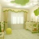 Може би най -универсалният цвят за детска стая е зелен. Стаята, направена в зелено, ще подхожда както на момче, така и на момиче. Зеленото има добри успокояващи свойства, насърчава развитието на въображението и ви доближава до природата. С този цвят можете да превърнете детската стая в зелена морава, окъпана в яркото лятно слънце. За да направите това, просто трябва да изберете добри тапети в топъл цвят и висококачествени подови настилки..