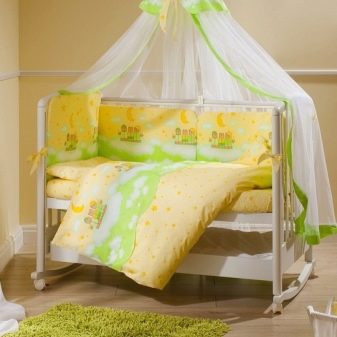 Ако комплектът бельо включва брони, брони или матрак, той трябва да бъде избран строго според размера на яслите, тъй като приставките на тези елементи са проектирани строго в съответствие с размера на яслите.
