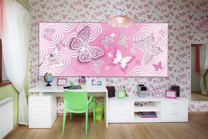 Истинската стая на малката принцеса не се ограничава само до героите на Дисни; за да създадете луксозен интериор за млада кралица, достатъчно е да създадете интериор на стая в класически дизайн и да изберете фототапети на приказна страна с пеперуди или феи. Между другото, използването на фототапет с цветни пеперуди ще бъде подходящо както за малко момиче, така и за тийнейджърка, основната задача е да не прекалявате с модел, тоест да украсите една или няколко зони от стаята и да оставите място за обикновен тапет.