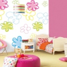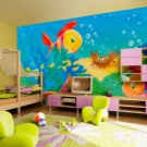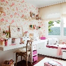 - За възраст 10 и повече години са подходящи тапети с флорален принт, които почти всички момичета обожават, а за по -младо поколение ще се харесват анимационни герои, азбуката и цифрите в комбинация с геометрични фигури, което ще ви позволи едновременно да научите нови думи и форми.