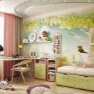 - Изборът на цвят на фототапета зависи от характера на момичето: топлите нюанси с контрастни детайли са подходящи за апатични лица, докато за активните момичета ще бъде полезно да изберете успокояващи нюанси на тапети: пастелни, зелени, прахообразни с едва забележим модел.