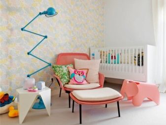 - За малко дете изберете контрастен тапет с шарка и изключете желанието да купувате обикновени светли цветове, в противен случай детето може лесно да оцвети такива тапети, докато върху цветните стени малките шеги на бебето няма да бъдат толкова забележими.