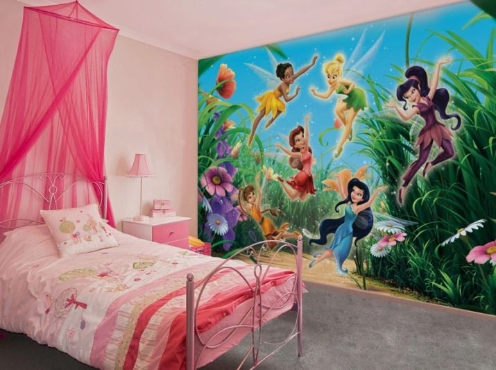 Главните герои в интериора на спалнята на момичето често са цветни принцеси или приказни феи, а розовото става основният цвят на детската стая..