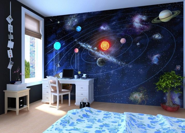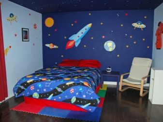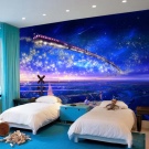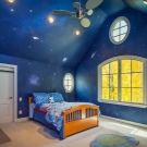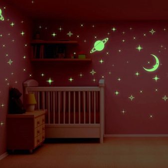 Универсален вариант за деца от двата пола е тапет за детската стая със светещи звезди. Те могат да се комбинират с други тапети, за да създадат конкретна тема. Така например, момчешката стая може да бъде залепена с тапети със звезди от едната страна, и тапет с изображение на ракета или космически извънземни от карикатура от друга. За спалня на момиче в няколко звездни тапети можете да вземете плакати или стикери с вълшебни феи.