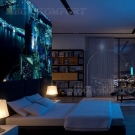 - Светещите тапети изглеждат най -добре от разстояние и в големи стаи. Ако имате малка площ от стаята, може би си струва да залепите с такъв тапет не цялата стая, а една стена или дори фрагмент от стената..