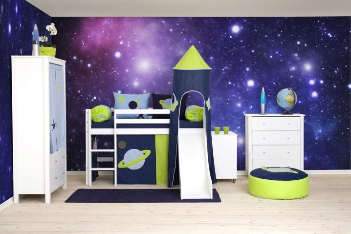 Малките мечтатели, които обичат карикатури за космически пътешественици и вече мечтаят за бъдещо изследване на Вселената, ще се заинтересуват да видят космически истории върху тапетите по стените на стаята си. Те ще бъдат на място както в зоната за игра, така и в спалнята, а след това масата за игра на вашето бебе ще се превърне в контролен панел, а креватчето му в космическа капсула.