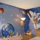 Малките мечтатели, които обичат карикатури за космически пътешественици и вече мечтаят за бъдещо изследване на Вселената, ще се заинтересуват да видят космически истории върху тапетите по стените на стаята си. Те ще бъдат на място както в зоната за игра, така и в спалнята, а след това масата за игра на вашето бебе ще се превърне в контролен панел, а креватчето му в космическа капсула.