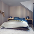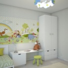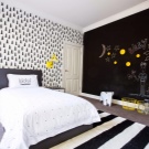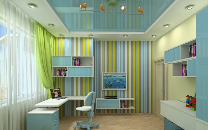 Друг вариант е тапет с орнамент. Ивиците са най -добрият избор – това е неутрален модел, който ще подхожда на всяка възраст. Възможно е да се комбинират ивици с обикновен тапет, основното е да се спазва комбинацията от нюанси. Особеността на раирания тапет е способността му да коригира визуално пропорциите на помещението – вертикалните ивици ще направят стаята по -висока, а хоризонталните – по -широки.