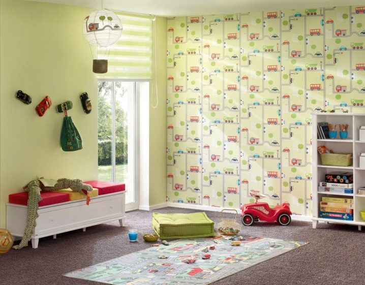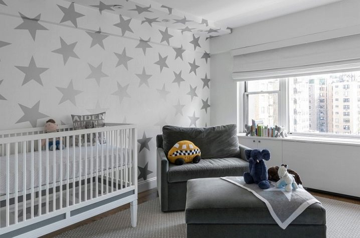 Основното за новородено е, че тапетът в стаята му е лек и топъл. Добре е, че имат рисунки под формата на детски играчки: лодки, коли, мечки. Чертежите трябва да са умерено ярки, тогава момчето ще се заинтересува да ги разгледа.