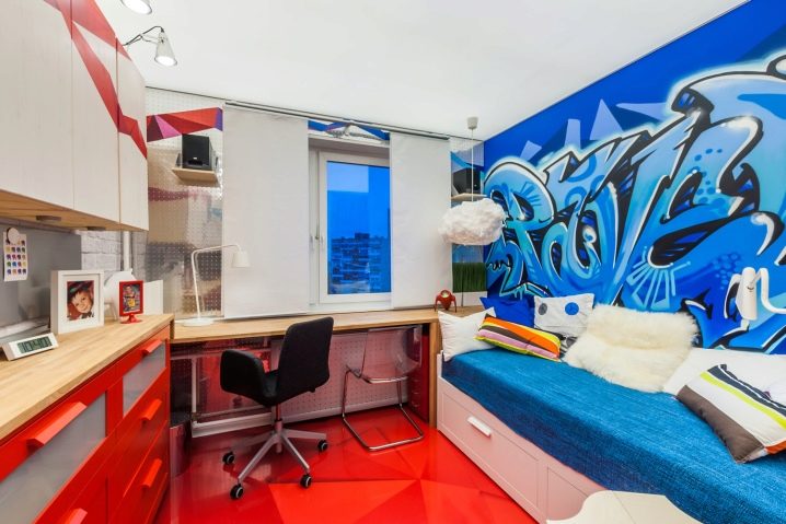 Следователно, стилът на „художествено хулиганство“ не е непременно предизвикателно ярки и наперени картини, те може да са спокойни, строги и лаконични. Такова самоизразяване в интериора на вашата стая ще разкрие вътрешния свят на тийнейджър и ще го зарежда с отлично настроение ден след ден..