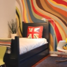Друго интересно решение при избора на тапет за детска стая е да използвате една техника: фонът се създава чрез контрастираща декорация на една от стените.