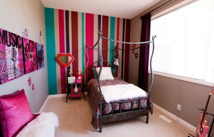 - Рок. Ако едно момиче е страстно за тази посока в музиката, тогава нейната страст може да се отрази във вътрешността на стаята. Стените обикновено са боядисани в сиво или бежово за графити или плакати на любимите ви звезди..