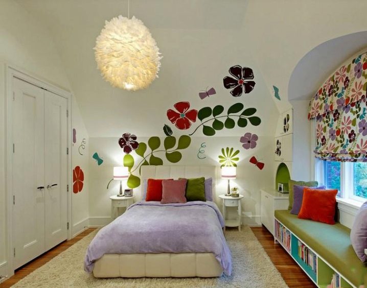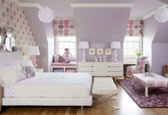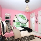 - Романтичен. Розово, бежово, ментово или с цветя. Но тогава цялото обзавеждане в стаята трябва да поддържа общата посока на стила..