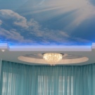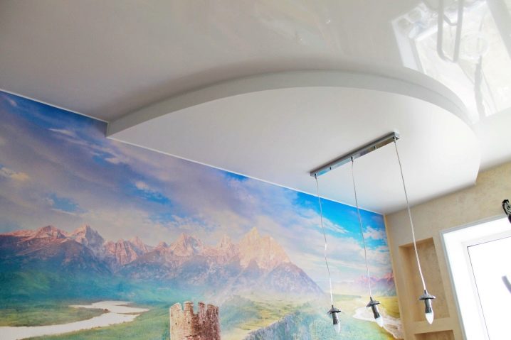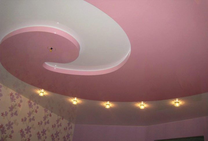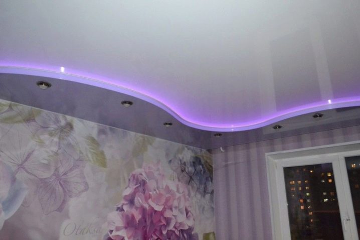 - Извити линии. За производството на такъв таван се използват метални профили с прорез. На тавана се монтира рамка, след което се прикрепят таванът и монтажните ленти.