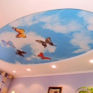 - За малки деца таванът може да бъде украсен с фотопечат. Образът на приказни герои ще зарадва хлапето.