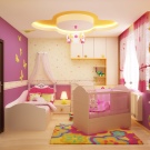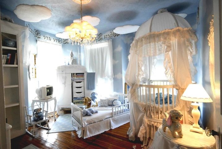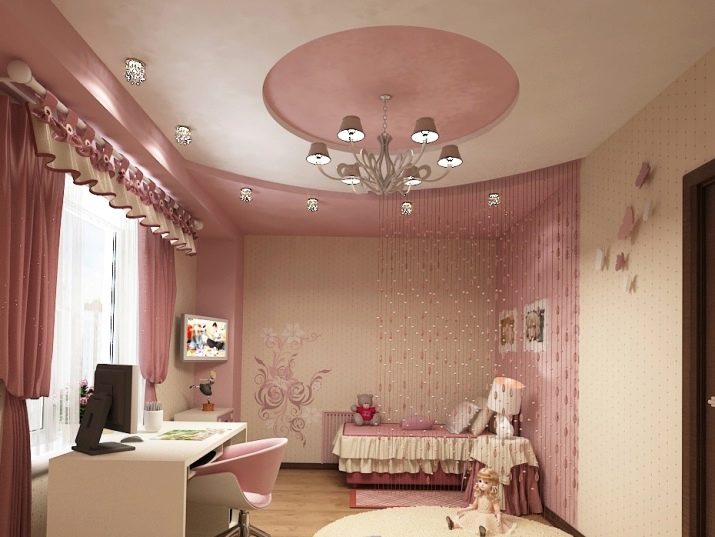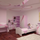 Ако мислите за интериора и декорацията на стая за малко момиченце, тогава нашият основен съвет е да не прекалявате. Психиката на детето окончателно се формира едва на шестгодишна възраст. Резките цветове и твърде причудливи форми могат да раздразнят детето и това не е ефектът, който искате да постигнете. Понякога, ако таванът ви се струва твърде скучен, е по -добре да закупите допълнителни осветителни решения, например „звездно небе“ или лампи, които променят цвета си. Ако ви омръзне такова устройство, винаги можете да го поставите на рафта, за разлика от тавана, който не е толкова лесен за смяна..