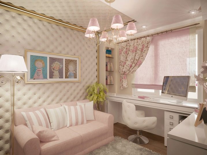 Оптималната цветова схема за стаята на момичето е комбинация от няколко топли и спокойни нюанса, с малки вложки от слънчеви петна в тези области, където дъщеря ви играе или учи..