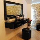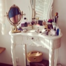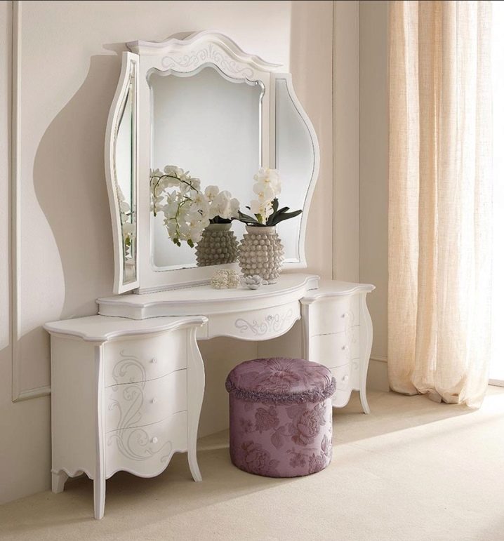 Тоалетката заема малко място, става грандиозен детайл от цялостния дизайн на стаята и винаги се откроява на фона на леглото, завесите, гардеробите и т.н..