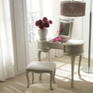 От пейзажа можете да се сетите за интересни гравюри, апликации, щампи, цветни драперии. Самото огледало се предлага в матово или гланцово покритие. Важен аксесоар за тоалетката ще бъде настолна лампа, чийто дизайн трябва точно да повтаря избраните от вас мебели. Малки LED крушки могат да бъдат вградени и в самата огледална рамка, създавайки сценичен ефект.